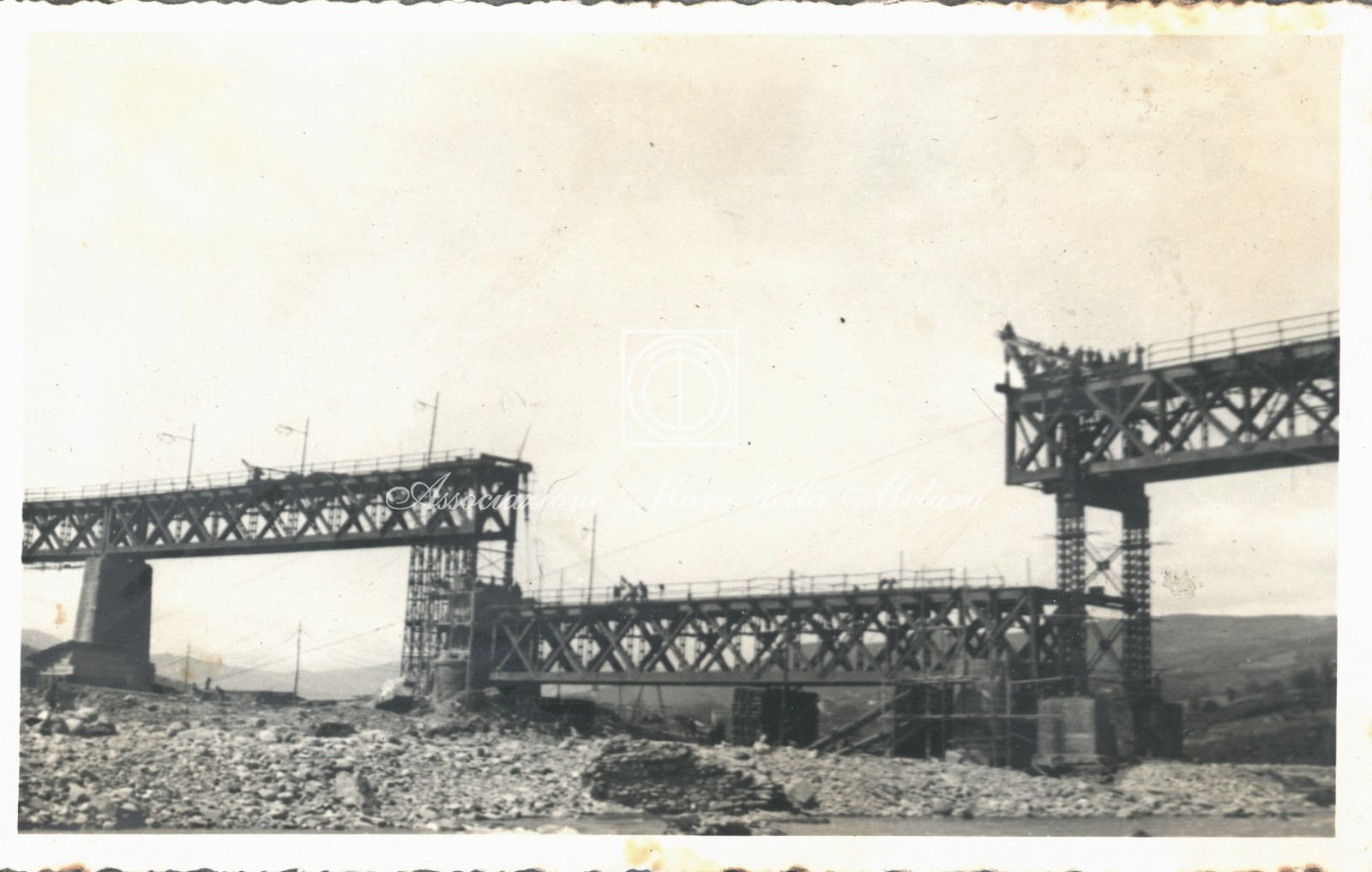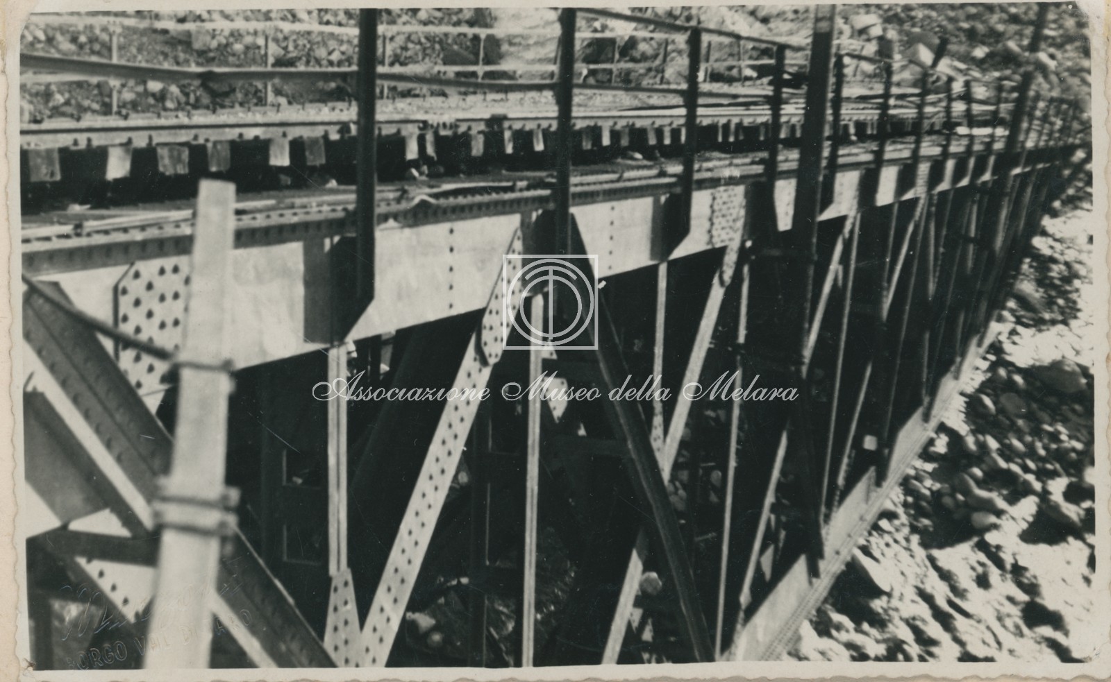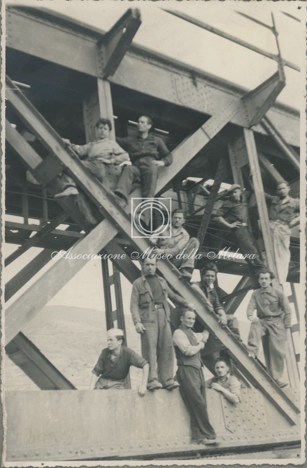 Gli scatti, di vario formato, documentano i lavori di ricostruzione del ponte ferroviario di Borgo Val di Taro, in provincia di Parma, distrutto dai bombardamenti nel corso della Seconda Guerra Mondiale. La data di compilazione dell’album risale al 29 maggio 1946, e le fotografie sono probabilmente databili allo stesso anno e a quello precedente, quando, dopo la Liberazione e la fine della guerra, gli stabilimenti spezzini della Odero Terni Orlando inaugurarono, o meglio, intensificarono la produzione civile e ferroviaria.