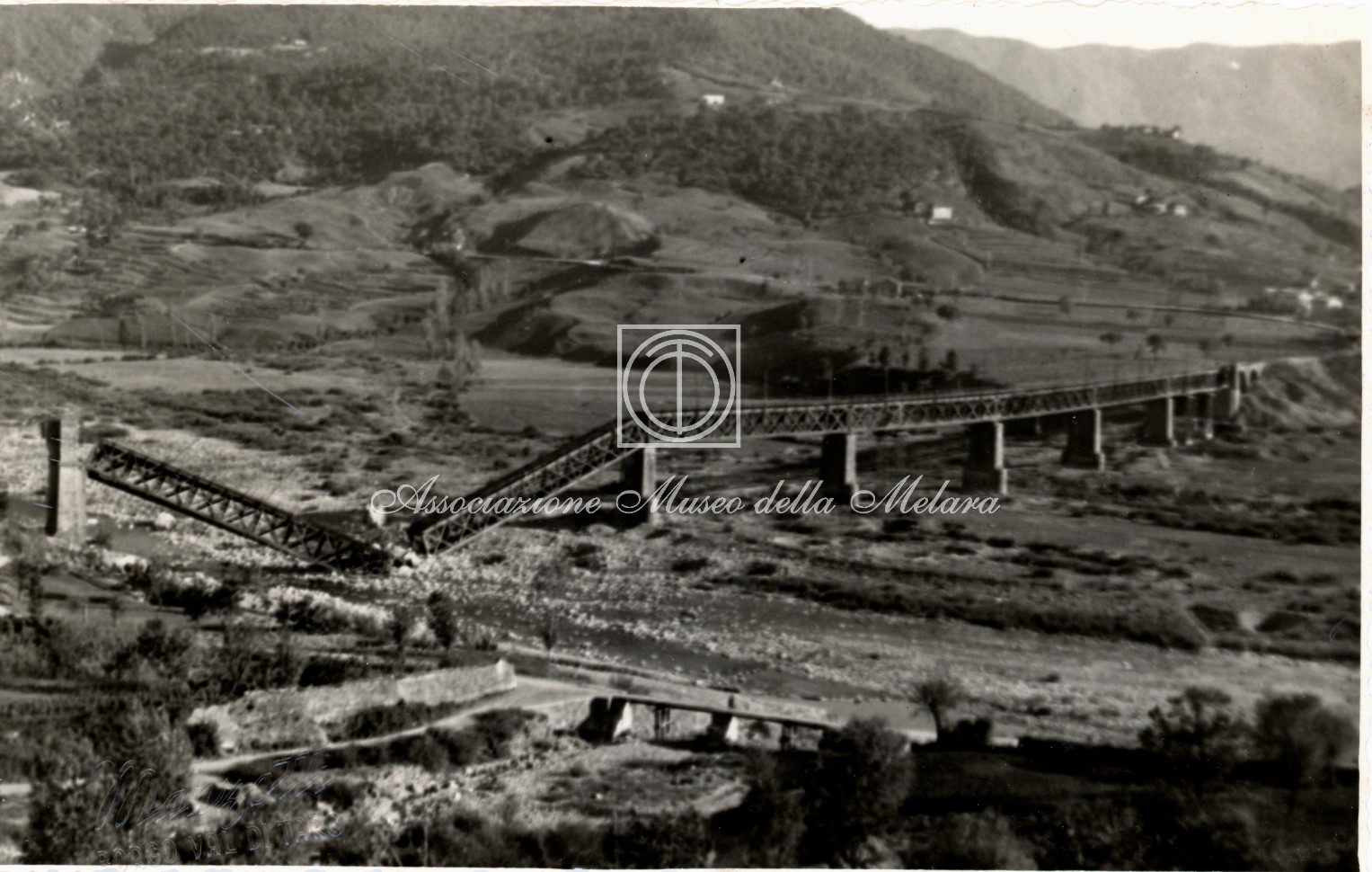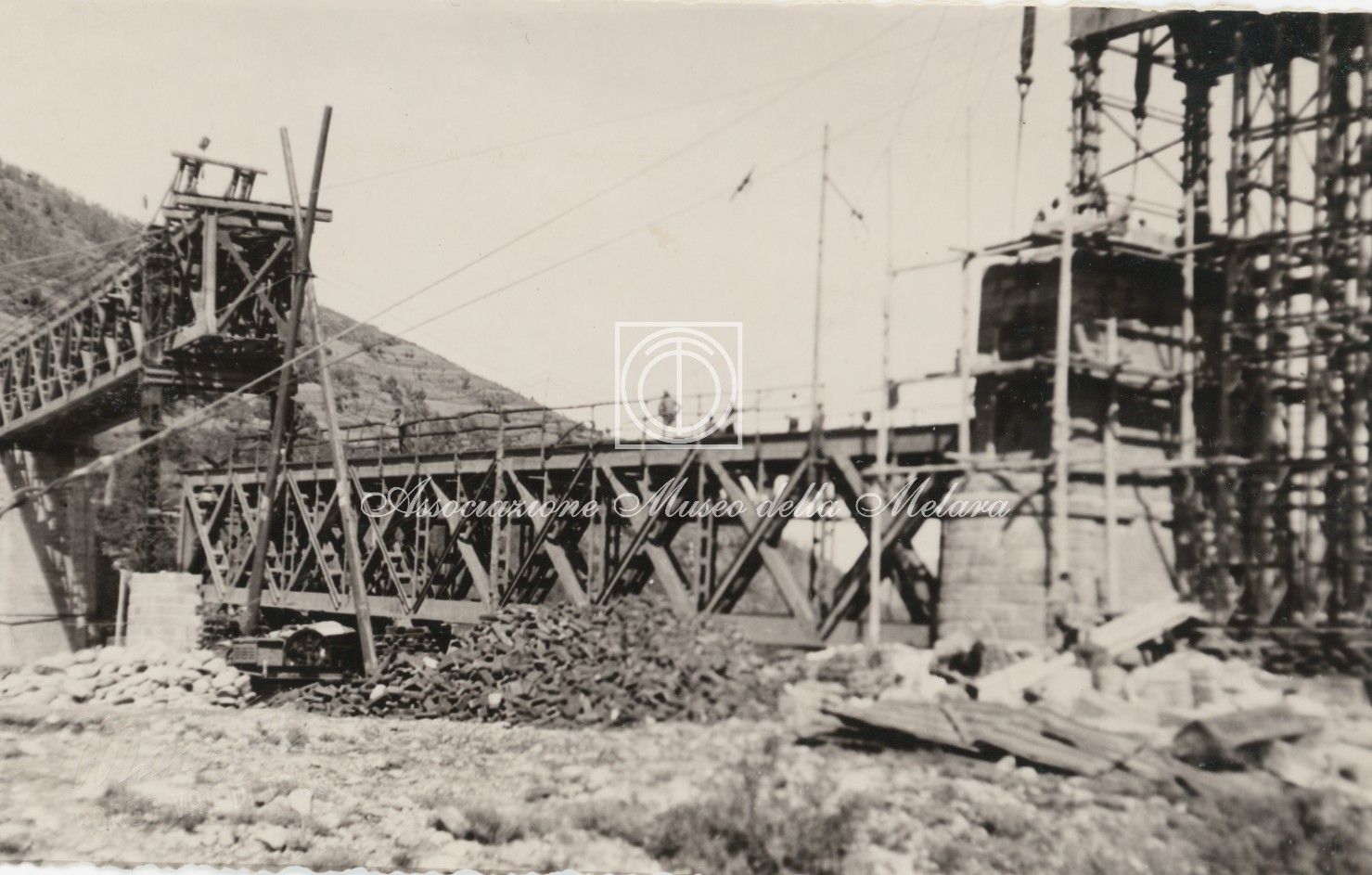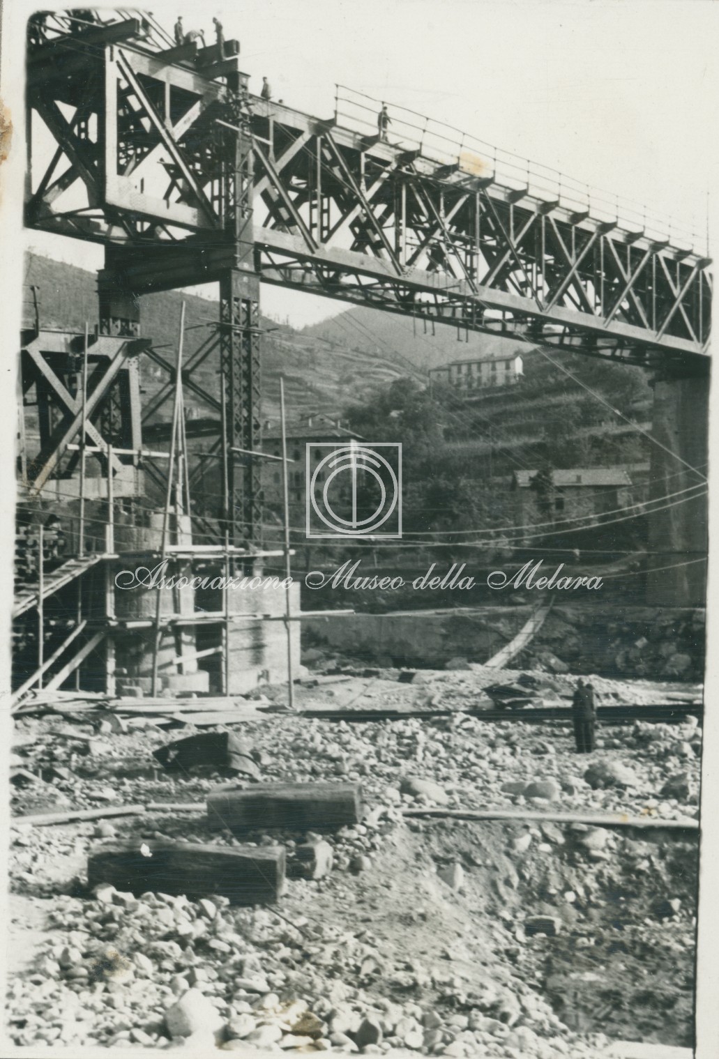 Gli scatti, di vario formato, documentano i lavori di ricostruzione del ponte ferroviario di Borgo Val di Taro, in provincia di Parma, distrutto dai bombardamenti nel corso della Seconda Guerra Mondiale. La data di compilazione dell’album risale al 29 maggio 1946, e le fotografie sono probabilmente databili allo stesso anno e a quello precedente, quando, dopo la Liberazione e la fine della guerra, gli stabilimenti spezzini della Odero Terni Orlando inaugurarono, o meglio, intensificarono la produzione civile e ferroviaria.