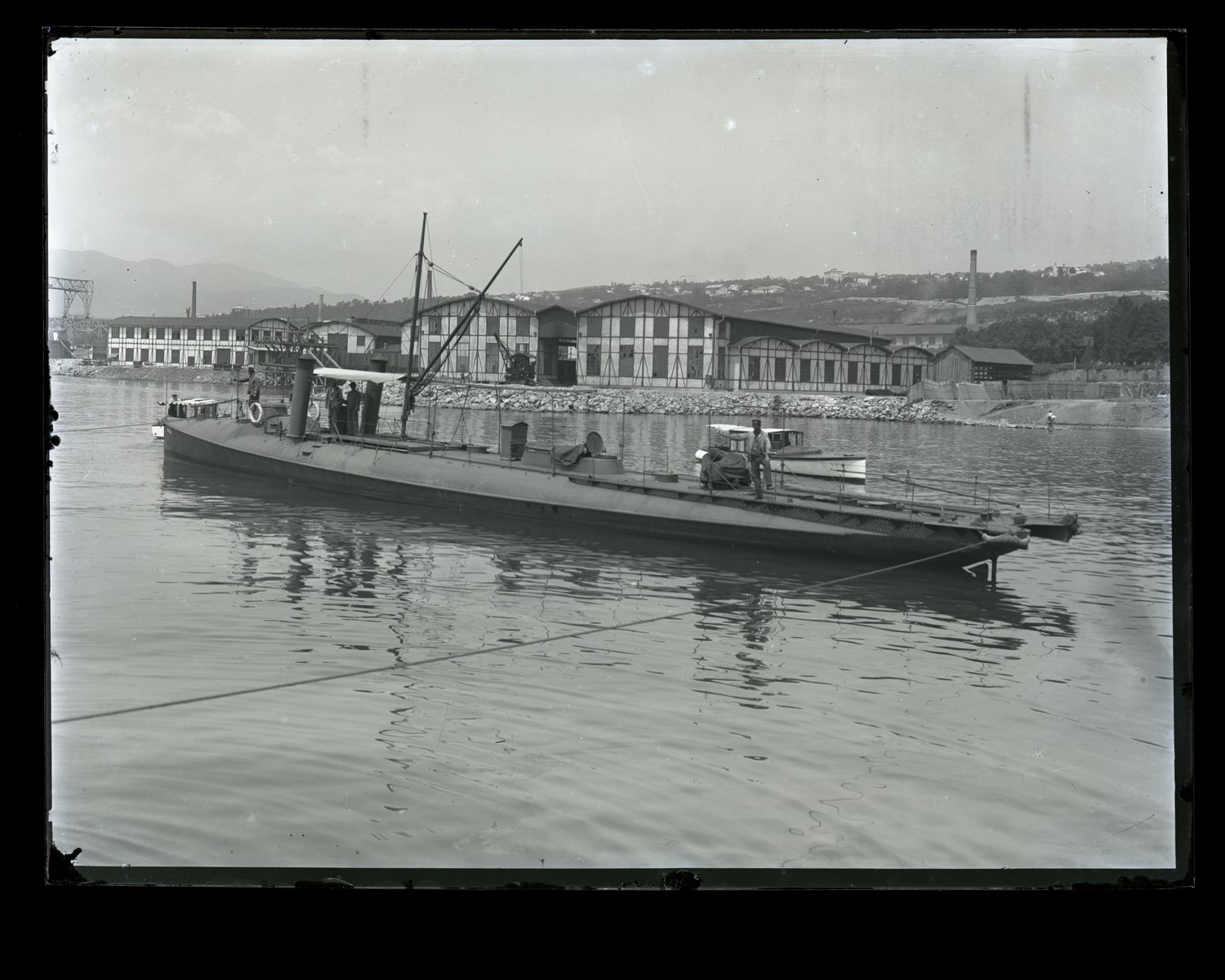 Marinai a bordo di sottomarino all'esterno del Silurificio Whitehead di Fiume