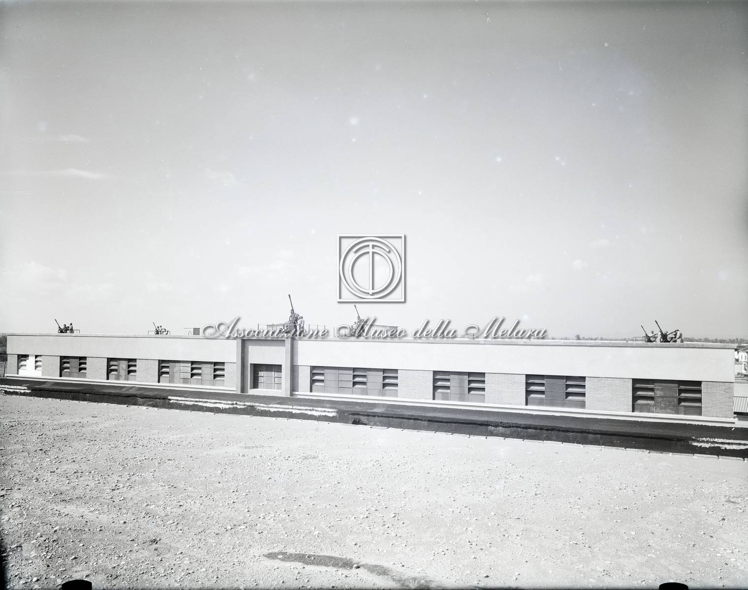 Vista della palazzina durante le prove di difesa contraerea