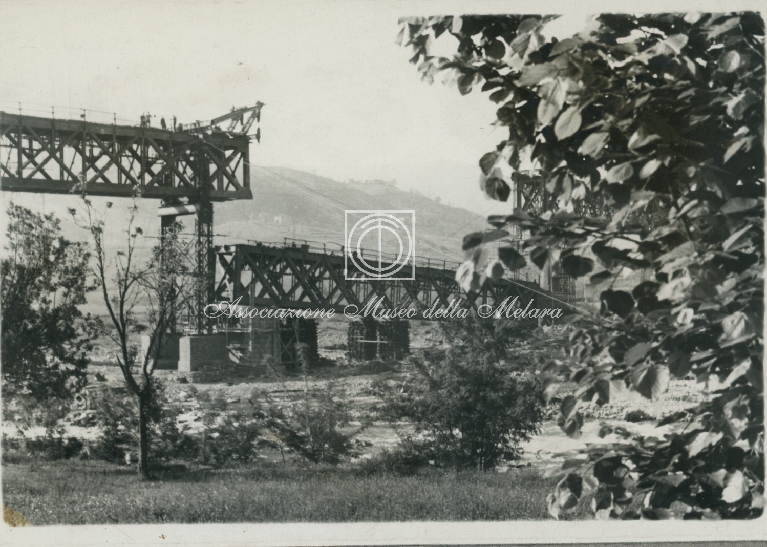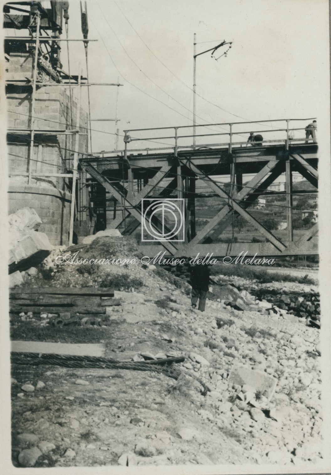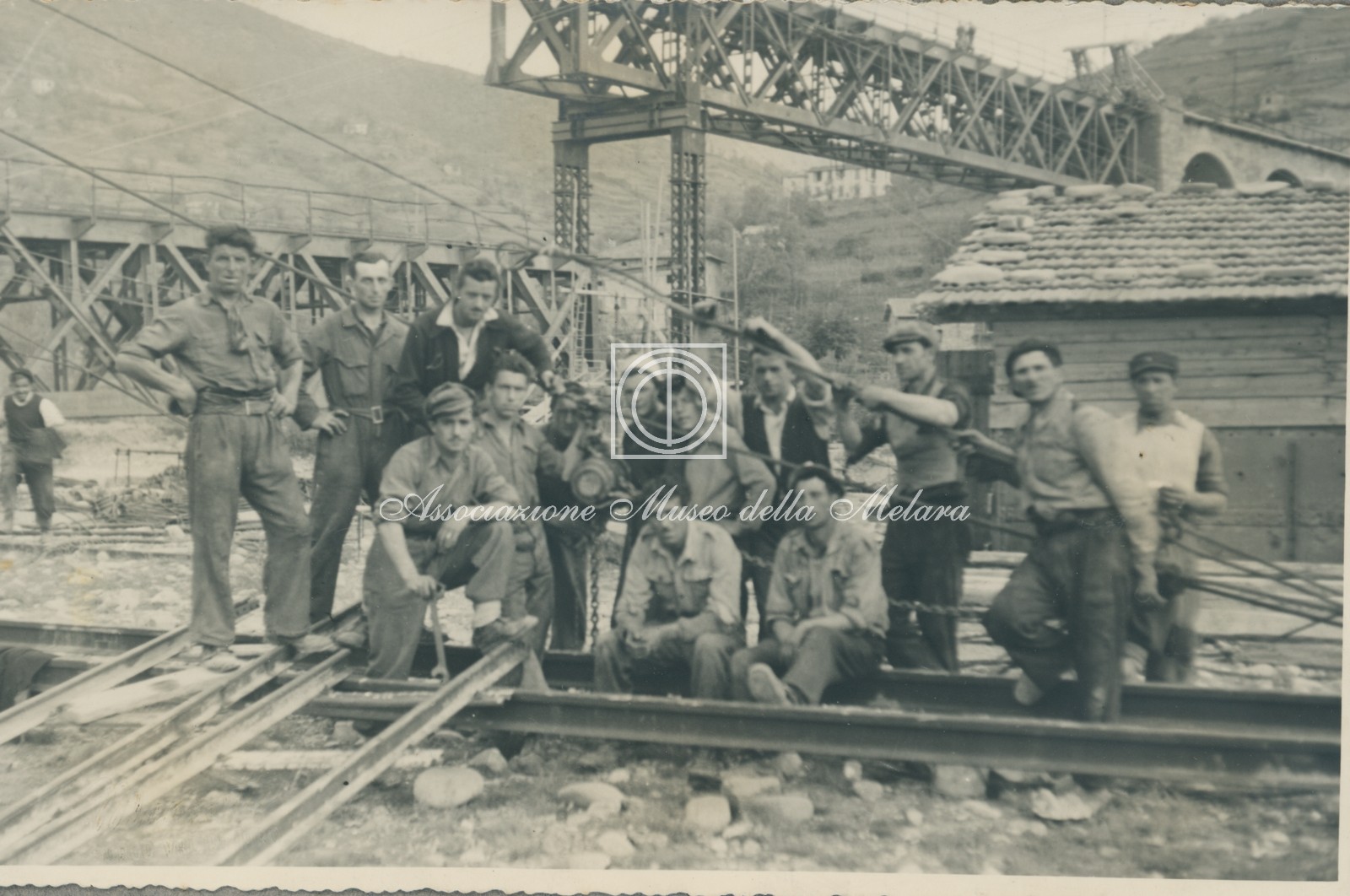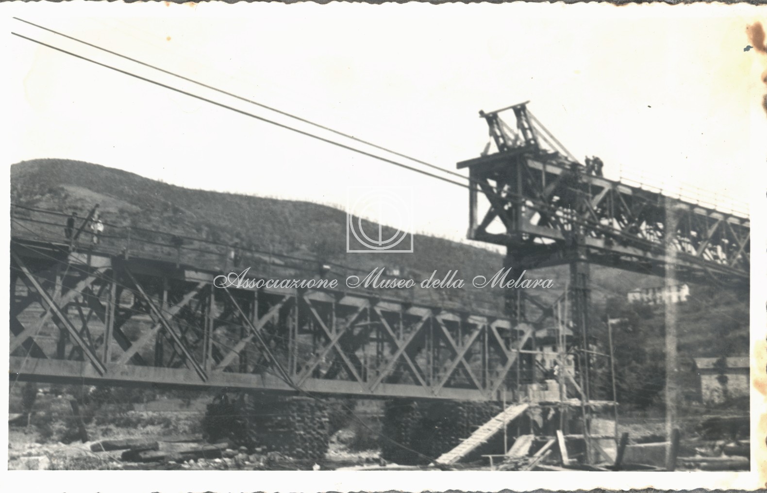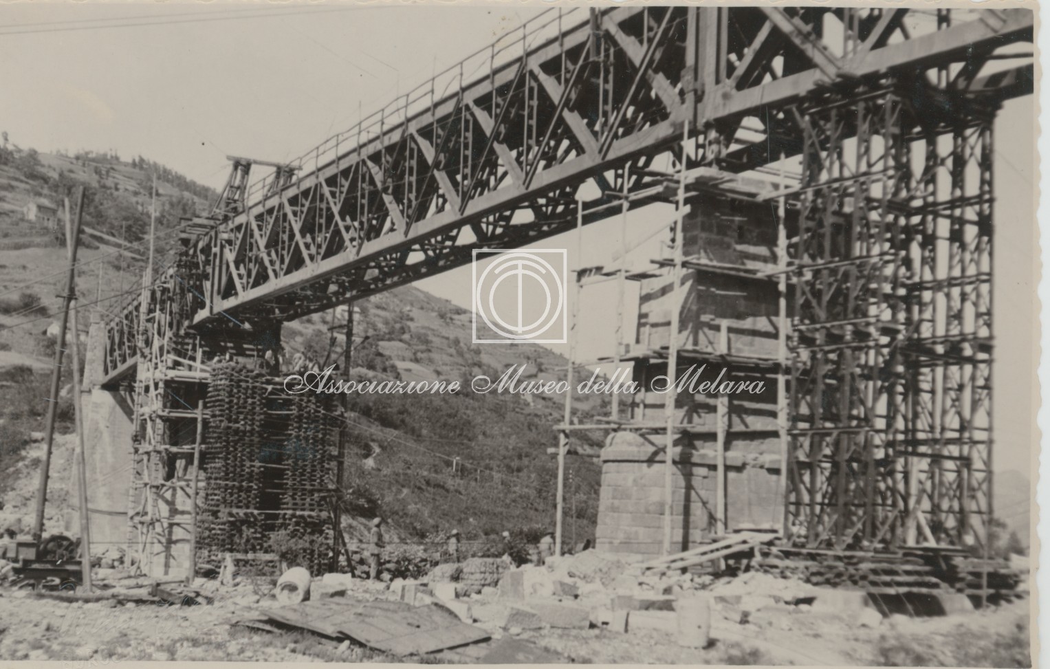 Gli scatti, di vario formato, documentano i lavori di ricostruzione del ponte ferroviario di Borgo Val di Taro, in provincia di Parma, distrutto dai bombardamenti nel corso della Seconda Guerra Mondiale. La data di compilazione dell’album risale al 29 maggio 1946, e le fotografie sono probabilmente databili allo stesso anno e a quello precedente, quando, dopo la Liberazione e la fine della guerra, gli stabilimenti spezzini della Odero Terni Orlando inaugurarono, o meglio, intensificarono la produzione civile e ferroviaria.