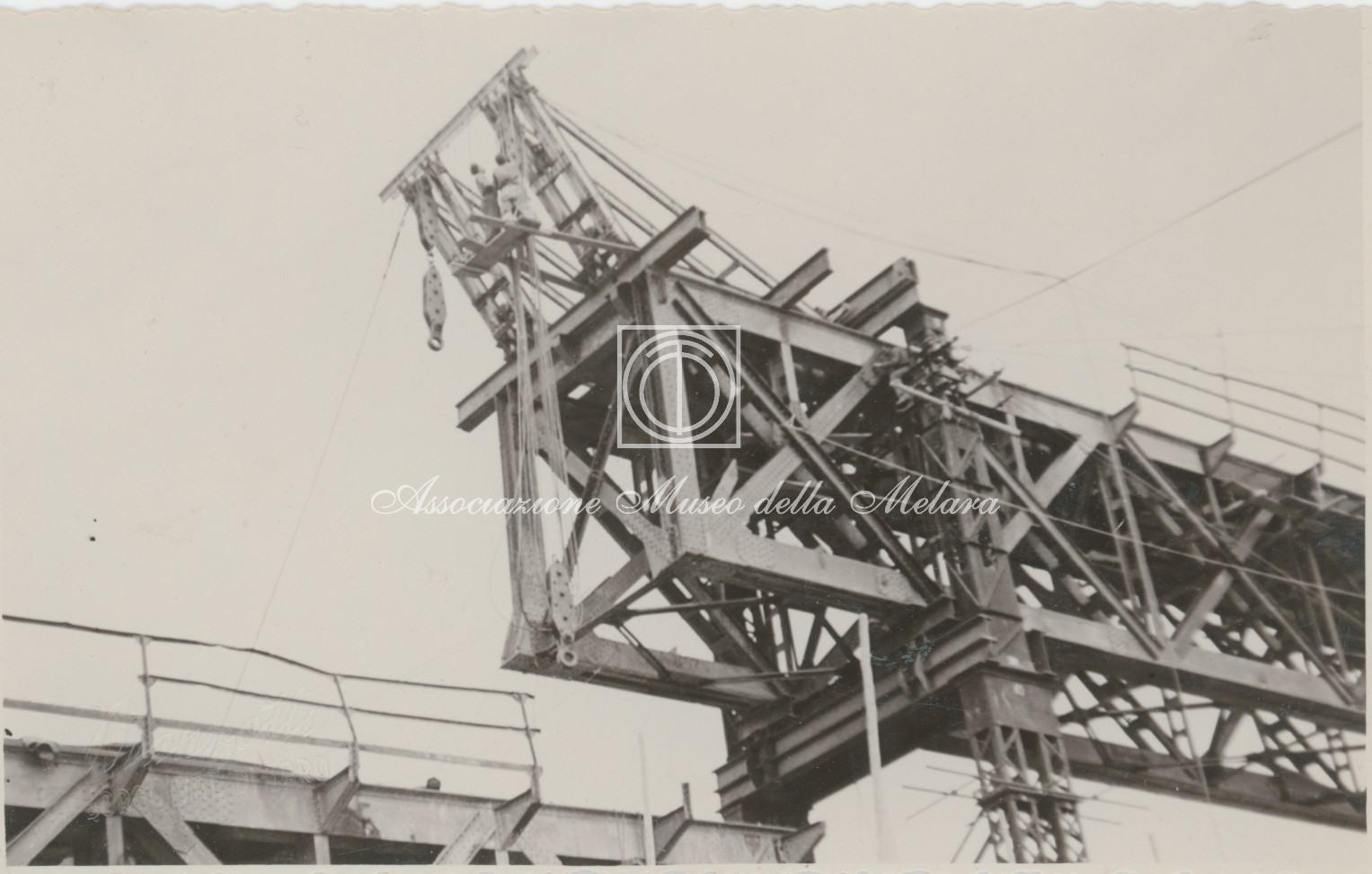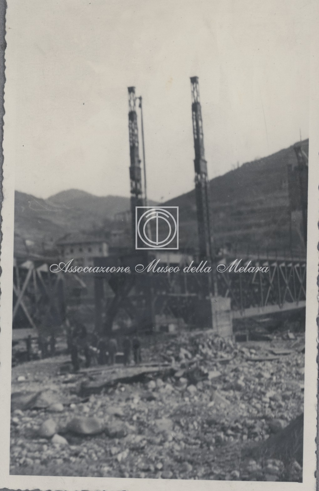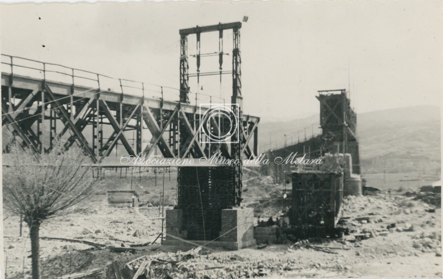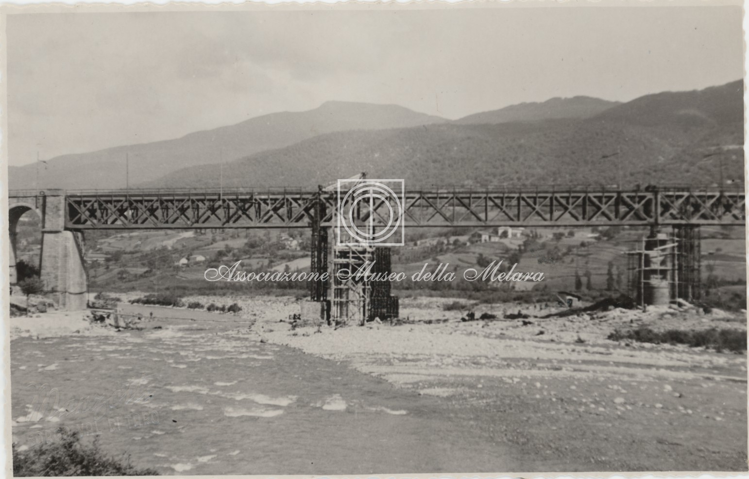 Gli scatti, di vario formato, documentano i lavori di ricostruzione del ponte ferroviario di Borgo Val di Taro, in provincia di Parma, distrutto dai bombardamenti nel corso della Seconda Guerra Mondiale. La data di compilazione dell’album risale al 29 maggio 1946, e le fotografie sono probabilmente databili allo stesso anno e a quello precedente, quando, dopo la Liberazione e la fine della guerra, gli stabilimenti spezzini della Odero Terni Orlando inaugurarono, o meglio, intensificarono la produzione civile e ferroviaria.