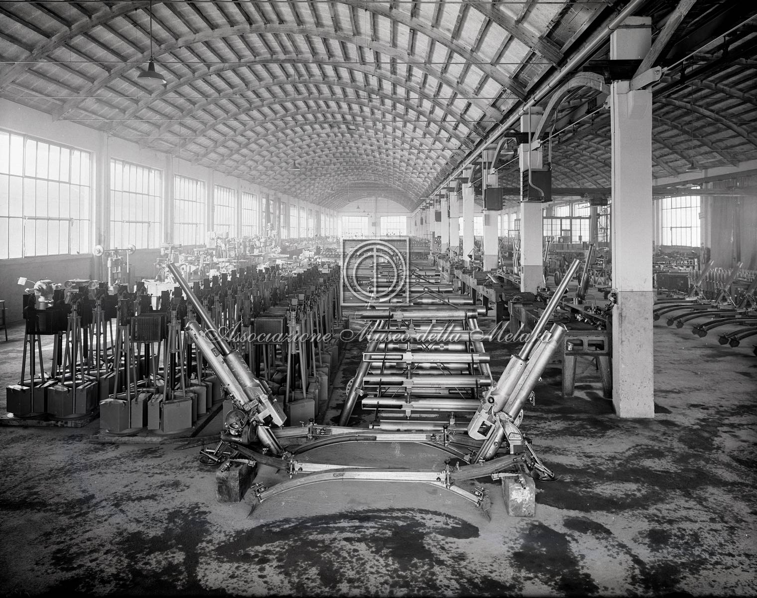 Vista del magazzino con mitraglie